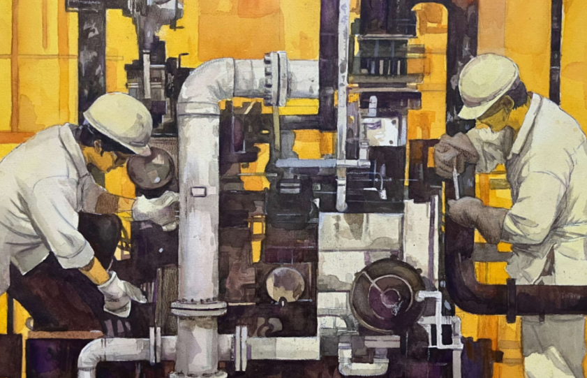本次展览中,来自郑州大学美术学院大三学生米雅萱的两幅作品《奋进者的征程》与《智制之光》激励眷注。